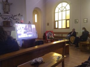 Durante la Misa, se realizó un sentido homenaje a todos aquellos residentes que en este tiempo de crisis sanitaria han partido a la Casa de Padre, ubicando sus fotografías en los asientos del templo «Aquí se vive y se muere en compañía, no en soledad; en los buenos cuidados no en el abandono; en la presencia del Señor, en la confianza del Señor que ha resucitado, y nos lleva a la Casa Paterna», afirmó el Padre Andrés.También se destacó la presencia remota de diversos Hogares, a través de las lecturas, ofrendas y peticiones. Especial participación tuvo el coro de funcionarias del Hogar Padre Pío, en Valdivia, que emocionó profundamente con sus interpretaciones, a todos quienes seguían la ceremonia en directo.