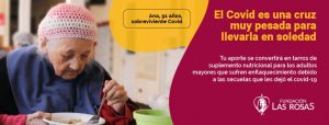 Para afrontar esta situación, Fundación Las Rosas inició esta Semana Santa una campaña solidaria para donar tarros de suplementos nutricionales a los residentes que sobrevivieron al COVID-19 y que viven en los 28 Hogares de la Institución solidaria. “EL COVID ES UNA CRUZ MUY PESADA PARA LLEVARLA EN SOLEDAD” afirma la cruzada que nos invita a realizar aportes monetarios, que se convertirán en tarros de suplementos nutricionales.