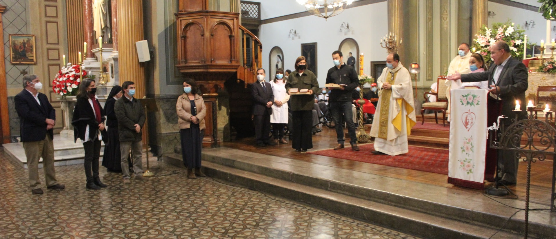 Como es tradicional, durante la Liturgia se consagraron los nuevos Padrinos, Madrinas, Damas de Blanco y Voluntarios Custodios de San José, acompañados por las Directoras de Hogares y Comunidades Religiosas. A cada uno de ellos se les hizo entrega de los Signos de compromiso. A los Padrinos y Madrinas se les entregó el Devocionario y la Oración del Voluntariado como signo de amor por nuestros residentes; a las Damas de Blanco el Santo Rosario, el pañuelo rosado y una medalla con la imagen de la Virgen. Finalmente a los Voluntarios Custodios de San José se les otorgó una medalla con la imagen del Santo bendecida, por su compromiso y generosidad.