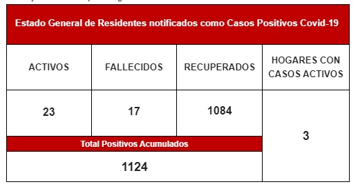 Con el objetivo de informar a la comunidad, Fundación Las Rosas presenta a continuación el balance semanal con los residentes confirmados como casos positivos para COVID-19, en los 28 Hogares de la Fundación a lo largo del país.