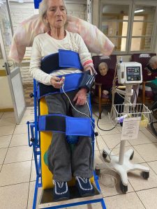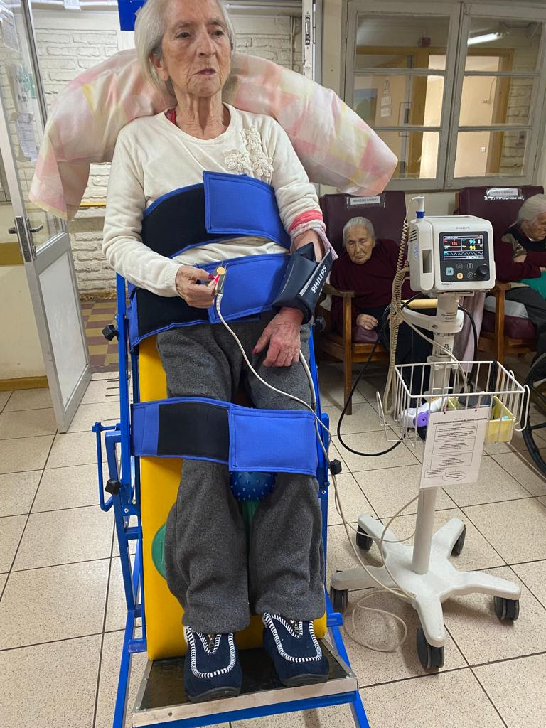 Ya son dos años de experiencia altamente recomendada de trabajo con la camilla bipedestación, que, lejos de levantar o poner de pie a los residentes, que eso ya es un gran logro y avance para ellos, les otorga calidad de vida y dignidad en sus últimos años de existencia,  dada la importancia que significa levantar sus cuerpos, sus vidas y sus sonrisas.