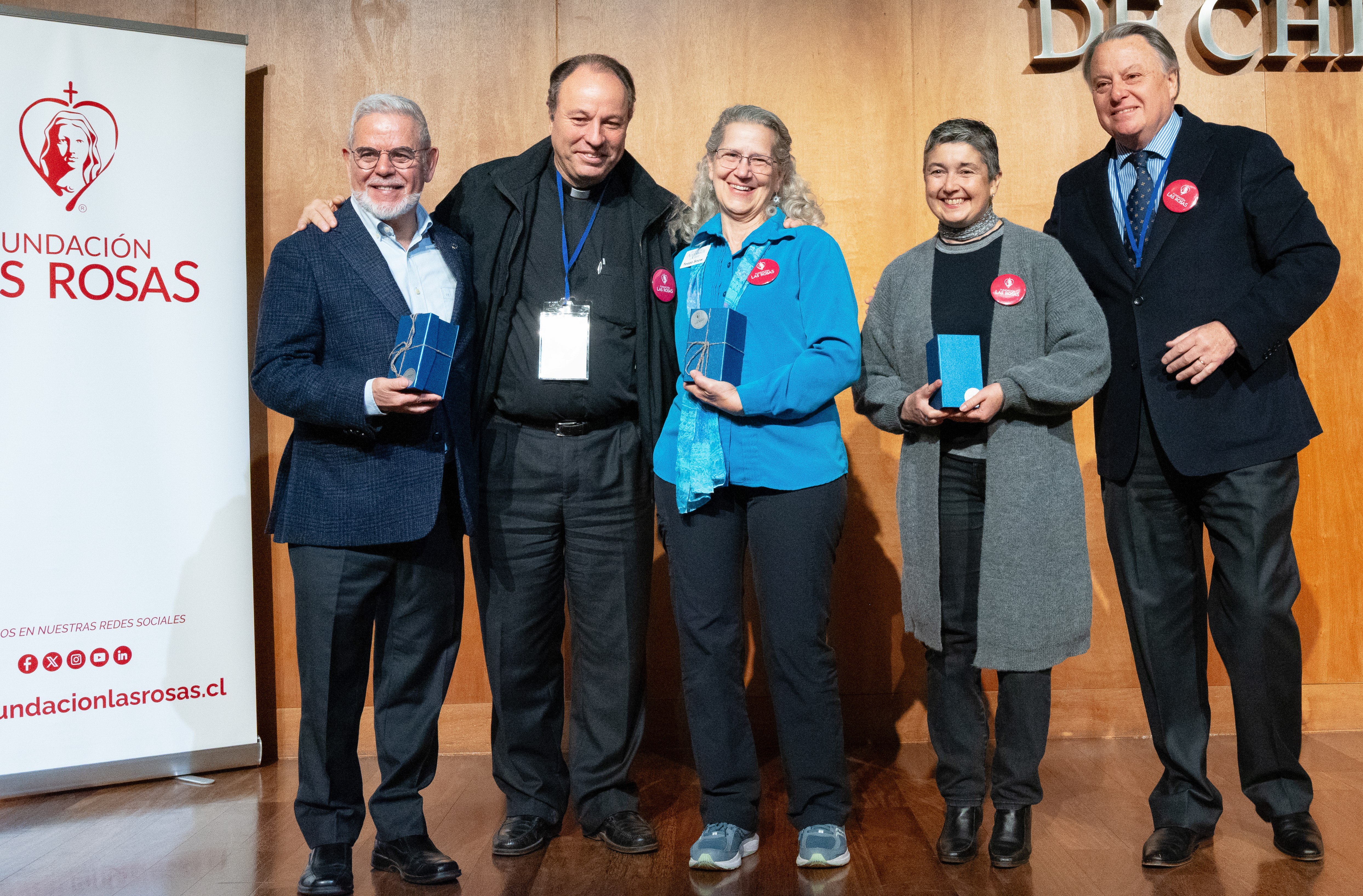 Francisco Baghetti, Vicerector U. Autónoma; Pbro. Carlos Irarrázaval, Capellán FLR; Teepa Snow; Paulina Urrutia; Edgardo Fuenzalida, Gte. Gral. FLR